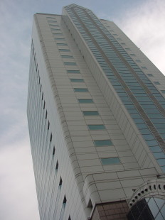 東京臨海新交通の竹芝駅のそばにある、 ニューピア竹芝ノースタワーです。 上の写真は陸地側から撮ったんですが、 上の絵の窓の描き方からすると、 反対側の海側から見た状態みたいです。