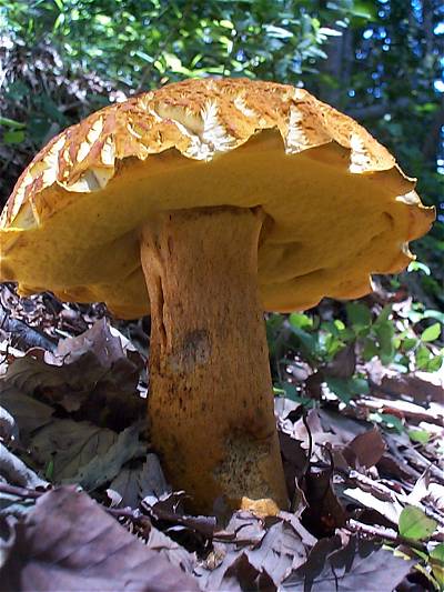 高尾山麓の雑木林に生えていました。斜面に何本も、20センチを超える金色のイグチが並ぶ様は見事で、数十メートル離れていてもはっきりと見ることができます。八王子ではほかに、陣場山などでも見ることができます。食用で利用価値のあるきのこです。