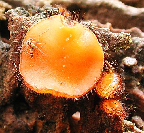 『アラゲコベニチャワンタケ』(長沼町,2002年10月) 湿り気のある朽ち木から発生していました。大きさはわずか数ミリの小さなきのこですが,縁に細かい毛が生えていて味わい深い姿をしています。顕微鏡観察をしていないので種名は仮同定と考えてください。 Scutellinia scutellata (L.) Lambotte Oct 5, 2002, Naganuma, Hachioji 種別索引に戻る あいうえお順索引に戻る