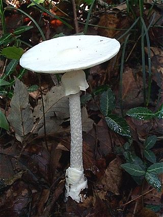 雑木林にふつうに見られる美しいきのこです。猛毒で、一本以上食べれば致命的だといわれ、透析などの専門的治療を受けないと死亡します。 Amanita virosa (Fr.) Bertillon Aug 27, 1999, Kamikawa, Hachioji