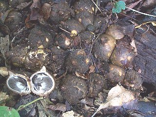 土の上の栗の意味でしょう。とてもユーモラスな形態をした菌です。雑木林の地上に割とふつうに見られます。