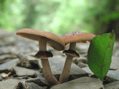 『フミヅキタケ』(川口町、2000年8月) 道路わきなどからぴょこーんと現れるどことなくかわいいきのこです。食用とされますが、群生しているところはなぜか見かけません。 Agrocybe praecox (Pers.: Fr.) Fayod Aug 20, 2000, Kawaguchi, Hachioji