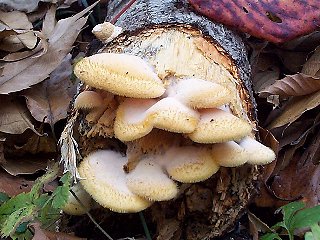 このきのこは秋遅くに倒木や立ち枯れの広葉樹に発生します。古いシイタケのほだ木にも出ることがあります。やわらかそうでおいしそうなヒラタケの仲間に見えますが、不快な菌臭とかみ切りにくさのために食用不可とされています。