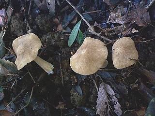 『クサウラベニタケ』(長沼町、1999年9月) 一見すると食べられそうだと思ってしまうきのこですが、有毒です。「毒だから食べるな」と注意したにも拘らず、食べてしまい下痢をした例を見たことがあります。そのくらい食べられそうに見えるきのこです。 Rhodophyllus sinuatus (Bull.: Fr.) Sing. Sep 5, 1999, Naganuma, Hachioji