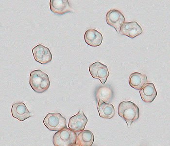 胞子です。イッポンシメジ属に特有の多角形型です。