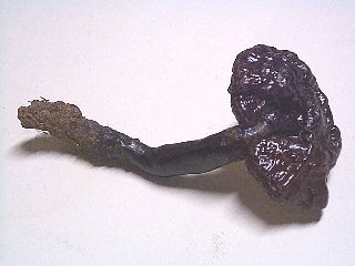布で磨くとピカピカに輝きます。まるでニスでも塗ってあるようです。マンネンタケの乾燥品の画像と比較すると形態の違いがわかります。