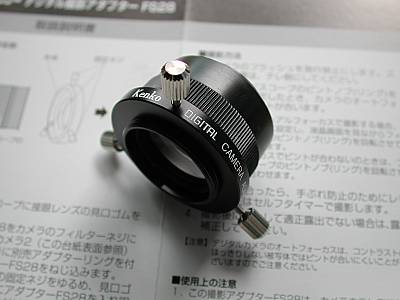 といっても答えは簡単である。筆者の顕微鏡撮影・コリメート法の解説に,「顕微鏡の接眼レンズはコリメート法のリレーレンズに使えますよ」と書いてある。これをそのまま応用するのである。顕微鏡撮影に使用して高品質の像が得られるのなら,一般撮影でもよい画像が得られるハズなのである。さてその方法であるが,下の画像をご覧いただきたい。