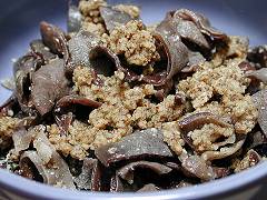 炒め物: アラゲキクラゲはよく洗い,ゆでこぼしておく。