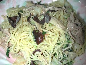 焼きそば: アラゲキクラゲは湯がいたものを使う。
