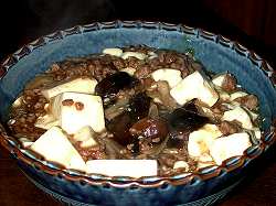 入れてとろみをつけたらできあがり。ハタケシメジの歯ごたえに豆腐の味が調和し、