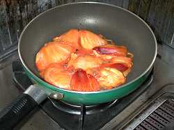 たタマゴタケはたっぷり水を含ませる。酒でもよい。次に