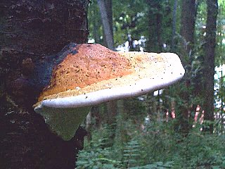 『タコウキンの一種』(元八王子町、1999年8月) カサの色が鮮やかなうちはまだ生長途中のことが多いです。 Polyporaceae Aug 28, 1999, Motohachioji, Hachioji