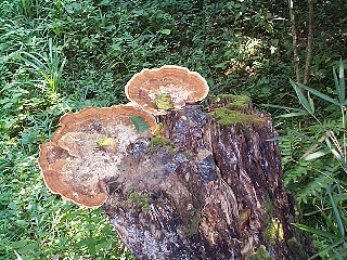 雑木林の切り株に30センチを超える大きな菌が発生していました。 Polyporaceae Sep 5, 1999, Naganuma, Hachioji