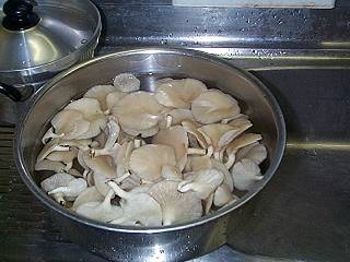 発生したての新鮮なウスヒラタケの収穫です。クセもなく口当たりもよいのでいろいろの料理に向くようです。