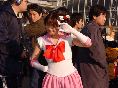 行ってきました、コミケ〜♪ 初めてコスプレ広場に足を踏み入れて、人ごみにビックリしながら彷徨っていたんですが、 とうとう亜美ちゃん&マーキュリーちゃんを見つけられませんでした。 でも、代わりにとっても可愛い、ちびムーンのコスプレの方を発見しました(*^_^*)