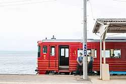フロートペンでは今、下灘駅から電車が発車します。
