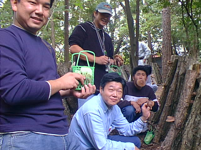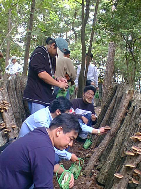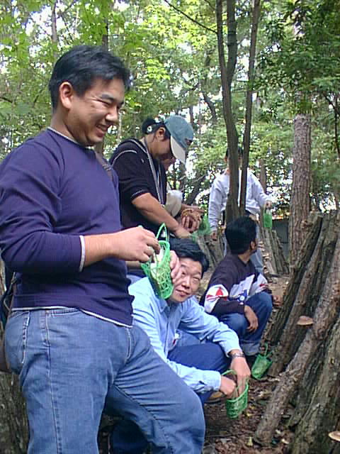 椎茸狩りに熱中するおぢさんたち(爆)。