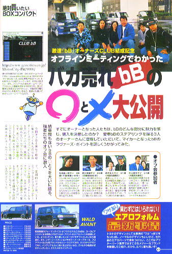 「車買いたいマガジン」6月号にclub bBが紹介されています。 買い逃した人、立ち読みし損なった人のために(爆)!少しだけ!