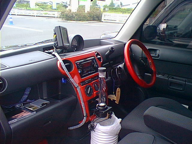 赤で統一した車内。