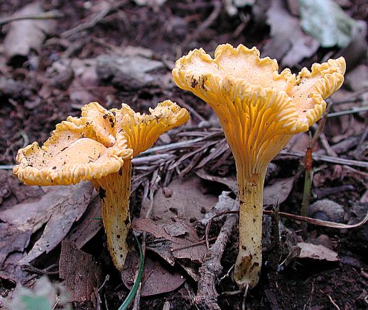 『アンズタケ』(川口町、2001年9月) 下草刈りがなされた林床に発生していました。毎年おなじ場所に生えます。アンズの香りのあるきのこで、食用にできます。ヒダの形状が独特です。 Cantharellus cibarius Fr. Sep 8, 2001, Kawaguchi, Hachioji 種別索引に戻る あいうえお順索引に戻る
