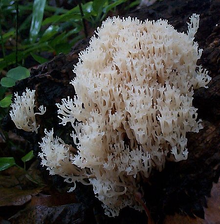 古い倒木から発生していました。自然の造形美に圧倒されます。この精緻な形にはどのような意味があるのでしょうか。 Clavicorona pyxidata (Fr.) Doty June 18, 2000, kawaguchi, Hachioji