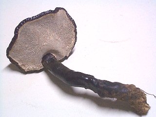 マンネンタケでは黄色からクリーム色ですが、本種の裏面は白色〜灰色です。