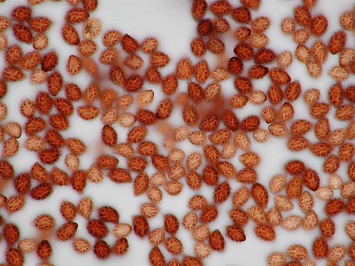 上のきのこの胞子です。つまんで食べたくなるお菓子のような形です。