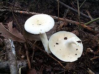 チチタケを白色にして少し大きくしたような形のきのこです。とても辛い乳を滴らします。秋の雑木林にふつうに見られます。 Lactarius piperatus (Scop.: Fr.) S.F. Gray Sep 15, 1999, Kawaguchi, Hachioji