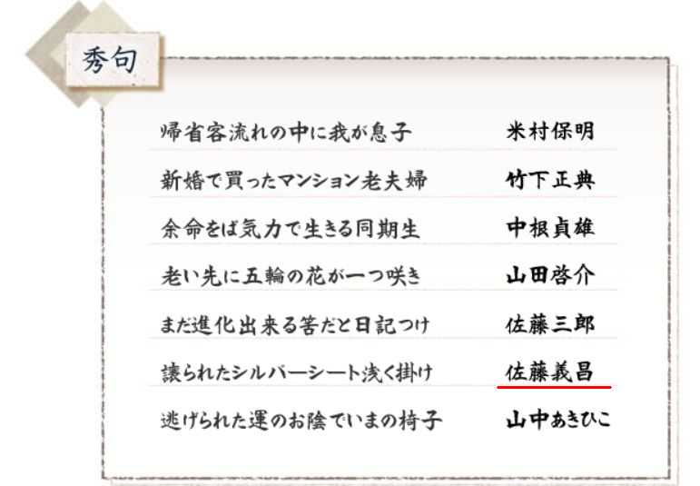 川柳サークルの小越龍之介さんがグランドチャンピオン「金賞」に選ばれました。